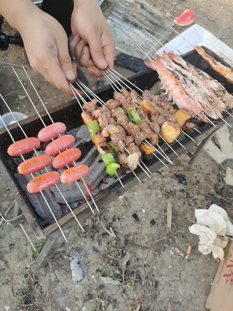 終于到了大家期待的燒烤環(huán)節(jié),香腸,肉,青菜,蝦也紛紛擔當起了主角,為這場味蕾上的狂歡貢獻著“演技”。