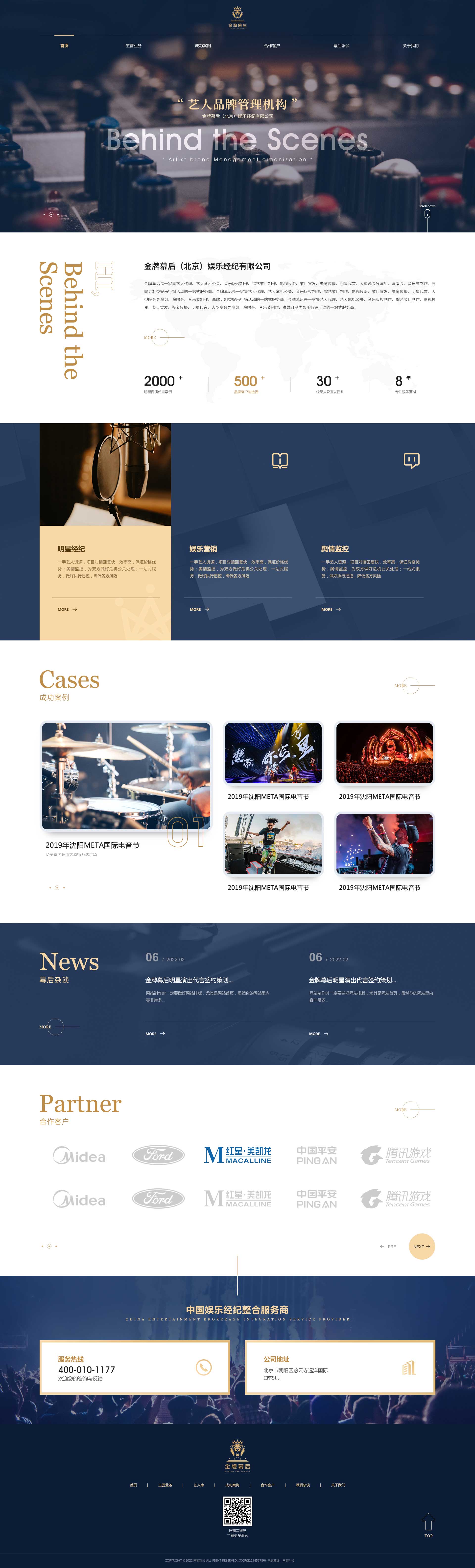 金牌幕后(Behind the Scenes),中國(guó)高端藝人品牌管理機(jī)構(gòu)。多年來(lái),公司憑借著龐大的藝人資源,優(yōu)良的專業(yè)品質(zhì),高效的執(zhí)行能力和一流的品牌服務(wù),為近500家品牌客戶成功定制了超過(guò)2000個(gè)的專業(yè)項(xiàng)目,贏得了客戶的認(rèn)可,并和多家品牌客戶建立了長(zhǎng)期的密切合作關(guān)系。