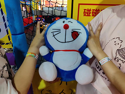 蹦沙卡拉卡,蹦沙卡拉卡,全場(chǎng)響起了音樂,原來是有獎(jiǎng)競(jìng)答活動(dòng),優(yōu)勝者可以選擇在全場(chǎng)甚至于整個(gè)倉庫選擇自己最喜愛的娃娃將心愛的它帶回家,一輪輪的比拼,我們的道婷小同志過五關(guān)斬六將,終于進(jìn)入了總決賽,最后激動(dòng)人心的時(shí)刻到來了,冠軍爭(zhēng)奪大PK,咦一一,沒想到這么激烈的游戲最后以石頭剪刀布的方式落下帷幕,而冠軍當(dāng)然就是我們幸運(yùn)無比的道婷小同志,她選擇了最愛的哆啦A夢(mèng)(晚上她一定能抱著她睡個(gè)好覺)哈哈哈哈